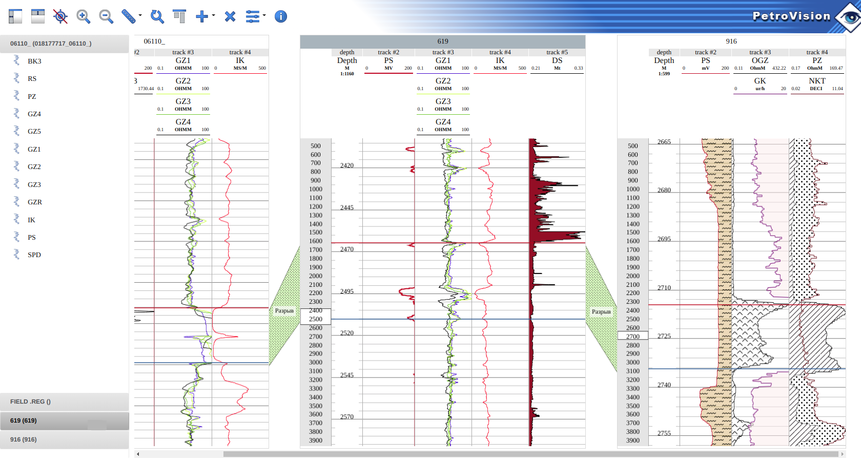Приложение Log Viewer для PetroVision является вспомогательной утилитой для просмотра результатов геофизических исследований, проводимых на всех этапах жизненного цикла скважин.